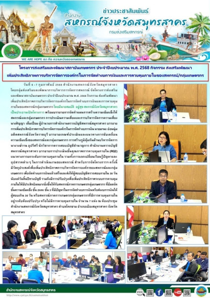 เมื่อวันที่ 6 - 7 กุมภาพันธ์ 2568 สำนักงานสหกรณ์จังหวัดสมุทรสาคร โดยกลุ่มส่งเสริมและพัฒนาการบริหารการจัดการสหกรณ์ จัดโครงการส่งเสริมและพัฒนาสถาบันเกษตรกร ประจำปีงบประมาณ พ.ศ. 2568 กิจกรรม ส่งเสริมพัฒนาเพิ่มประสิทธิภาพการบริหารจัดการองค์กรในการจัดทำงบการเงินและการควบคุมภายในของสหกรณ์/กลุ่มเกษตรกร โดยมีนายสมบัติ อยู่สุข สหกรณ์จังหวัดสมุทรสาคร เป็นประธานเปิดโครงการ พร้อมบรรยายการจัดทำแผนการสร้างความเข้มแข็งให้สหกรณ์และกลุ่มเกษตรกร การประเมินความเสี่ยงและการบริหารจัดการความเสี่ยง นางศิญญา เต็มเปี่ยม ผู้อำนวยการสำนักงานตรวจบัญชีสหกรณ์สมุทรสาคร บรรยายการเพิ่มประสิทธิภาพการบริหารจัดการองค์กรในการจัดทำงบการเงิน นายมานะ อ่อนนุ่ม อดีตสหกรณ์จังหวัดราชบุรี บรรยายเกณฑ์ประเมินและแนวทางการขับเคลื่อนความเข้มแข็งของสหกรณ์และกลุ่มเกษตรกร การสร้างภูมิคุ้มกันด้านบริหารจัดการ นางวงษ์วาน อุปรีศรี นักวิชาการตรวจสอบบัญชีชำนาญการ สำนักงานตรวจบัญชีสหกรณ์สมุทรสาคร บรรยายการประเมินชั้นคุณภาพการควบคุมภายใน (RQ2) แนวทางการยกระดับการควบคุมภายใน รวมทั้งการแลกเปลี่ยนเรียนรู้ปัญหาและอุปสรรคต่างๆ ในการดำเนินงานของสหกรณ์ สำหรับการจัดโครงการฯ ครั้งนี้ มีวัตถุประสงค์เพื่อเพิ่มประสิทธิภาพการบริหารจัดการองค์กรของสหกรณ์และกลุ่มเกษตรกร เพื่อจัดทำงบการเงินแล้วเสร็จและส่งให้ผู้สอบบัญชีตรวจสอบภายใน 30 วัน นับแต่วันสิ้นปีทางบัญชี รวมถึงมีการปรับปรุงเพื่อเพิ่มประสิทธิภาพระบบการควบคุมภายในให้มีประสิทธิผลมากยิ่งขึ้นให้กับสหกรณ์ภาคการเกษตร/กลุ่มเกษตรกร ที่มีผลจัดชั้นความเข้มแข็ง ชั้น 2 และ ชั้น 3 ที่มีปัญหาในการจัดทำงบการเงินหรือส่งงบการเงินให้ผู้สอบเกิน 30 วัน หรือสหกรณ์ภาคการเกษตร/กลุ่มเกษตรกรที่มีการควบคุมภายใน อยู่ระดับต้องปรับปรุง หรือไม่มีการควบคุมภายใน จำนวน 7 แห่ง ณ ห้องประชุมสำนักงานสหกรณ์จังหวัดสมุทรสาคร ตำบลโคกขาม อำเภอเมืองสมุทรสาคร จังหวัดสมุทรสาคร