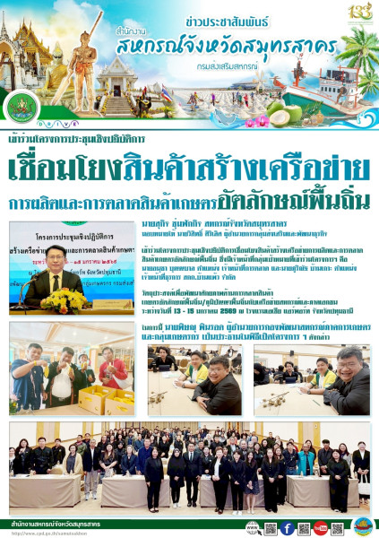 นายสุกิจ ชุ่มฟักกิจ สหกรณ์จังหวัดสมุทรสาคร มอบหมายให้ นายวิสิทธิ์ ศิริเลิศ ผู้อำนวยการกลุ่มส่งเสริมและพัฒนาธุรกิจ เข้าร่วมโครงการประชุมเชิงปฏิบัติการเชื่อมโยงสินค้าสร้างเครือข่ายการผลิตและการตลาดสินค้าเกษตรอัตลักษณ์พื้นถิ่น ซึ่งมีเจ้าหน้าที่กลุ่มเป้าหมายที่เข้าร่วมโครงการฯ คือ นายอนุชา บุญญบาล ตำแหน่ง เจ้าหน้าที่การตลาด และนายภูริณัฐ บ้านเกาะ ตำแหน่งเจ้าหน้าที่ธุรการ สกก.บ้านแพ้ว จำกัด
