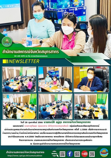 เมื่อวันที่ 28 กุมภาพันธ์ 2566 นายสมบัติ อยู่สุข สหกรณ์จังหวัดสมุทรสาคร มอบหมายให้ นางสาวสุกัญญา พุ่มมะปราง นักวิชาการมาตรฐานสินค้า กลุ่มส่งเสริมและพัฒนาธุรกิจสหกรณ์