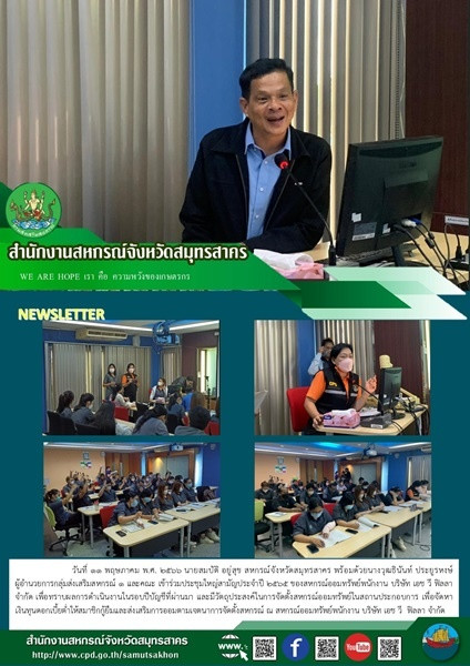 เมื่อวันที่ 11 พฤษภาคม พ.ศ. 256 นายสมบัติ อยู่สุข สหกรณ์จังหวัดสมุทรสาคร พร้อมด้วยนางวุฒธินันท์ ประยูรหงษ์ ผู้อำนวยการกลุ่มส่งเสริมสหกรณ์ 1 และคณะ เข้าร่วมประชุมใหญ่สามัญประจำปี 2565 ของสหกรณ์ออมทรัพย์พนักงาน บริษัท เอช วี ฟิลลา จำกัด เพื่อทราบผลการดำเนินงานในรอบปีบัญชีที่ผ่านมา และมีวัตถุประสงค์ในการจัดตั้งสหกรณ์ออมทรัพย์ในสถานประกอบการ เพื่อจัดหาเงินทุนดอกเบี้ยต่ำให้สมาชิกกู้ยืมและส่งเสริมการออมตามเจตนาการจัดตั้งสหกรณ์ ณ สหกรณ์ออมทรัพย์พนักงาน บริษัท เอช วี ฟิลลา จำกัด