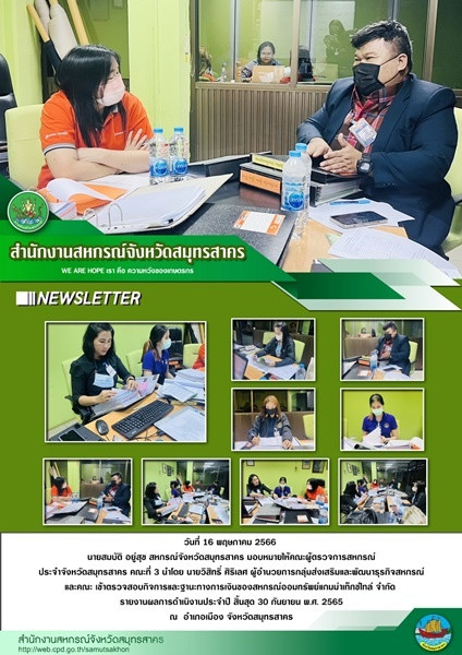 เมื่อวันที่ 16 พฤษภาคม 2566 นายสมบัติ อยู่สุข สหกรณ์จังหวัดสมุทรสาคร มอบหมายให้คณะผู้ตรวจการสหกรณ์ ประจำจังหวัดสมุทรสาคร คณะที่ 3 นำโดย นายวิสิทธิ์ ศิริเลศ ผู้อำนวยการกลุ่มส่งเสริมและพัฒนาธุรกิจสหกรณ์ และคณะ เข้าตรวจสอบกิจการและฐานะทางการเงินของสหกรณ์ออมทรัพย์แกมม่าเท็กซ์ไทล์ จำกัด รายงานผลการดำเนิงานประจำปี สิ้นสุด 30 กันยายน พ.ศ. 2565 ณ อำเภอเมือง จังหวัดสมุทรสาคร