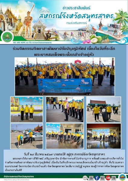 เมื่อวันที่ 29 มีนาคม 2567 นายสมบัติ อยู่สุข สหกรณ์จังหวัดสมุทรสาคร มอบหมายให้นางสาวสิริลักษณ์ เจริญกุลพานิช นักจัดการงานทั่วไปชำนาญการ พร้อมด้วยคณะฝ่ายบริหารทั่วไป เข้าร่วมจิตกรรมจิตอาสาพัฒนาปรับปรุงภูมิทัศน์ เนื่องในวันที่ระลึกพระบาทสมเด็จพระนั่งเกล้าเจ้าอยู่หัว ที่บริเวณศาลาอเนกประสงค์ วัดยกกระบัตร อำเภอบ้านแพ้ว จังหวัดสมุทรสาคร โดยมีนายวรณัฎฐ์ หนูรอต รองผู้ว่าราชการจังหวัดสมุทรสาคร เป็นประธานในพิธี